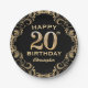 20th Birthday Party Black and Gold Glitter Frame Paper Plate