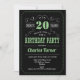 Elegant black, green, white retro design with chalkboard pattern and script font. Cheers to 20 years! Message me if you need further customization.