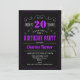 20th Birthday Party - Black Purple Invitation