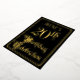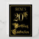 The front of this luxurious and fancy foil twentieth birthday party/celebration invitation design features the message “20th Birthday Celebration” in opulent script-style text. It also features a custom name. The background of the front is coloured black by default (although it can be customised to a different colour). The back features personalised details about the event, such as the date, time, location, and any other information that may be relevant. Elegant, ornate, customisable invitations like these might be used to invite guests to a birthday party/celebration being held in celebration of somebody’s 20th birthday. [~Z0000589]