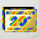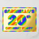 The front of this vibrant twentieth birthday party foil invitation card features a custom name, a large number “20th”, the message “BIRTHDAY PARTY!”, and a border, all featuring an exciting, colourful, rainbow spectrum inspired gradient pattern. The back features personalised details about the event, such as the date, time, location/venue, and any other information that may be important. Fun, eye-catching, personalised invitations like these might be used to invite guests to a birthday party being held in celebration of somebody’s 20th birthday. [~Z0000593]