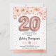 20th birthday party invitation. Elegant design in faux glitter rose gold with floral accent. Invite card with rose gold number 20 balloons, script font with confetti. Blush coral pink, white. Perfect for a stylish twentieth bday celebration. Message me if you need custom age.