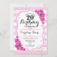 20th Birthday - Pink White Stripes Roses Invitation