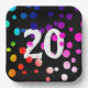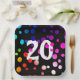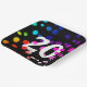 Neon rainbow dot pattern on black background for 20th birthday party.