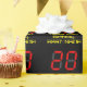 This geeky and silly birthday-themed wrapping paper design features a large number "20" having a red seven segment digital display style look, along with the message "Happy 20th Birthday," and a customisable name in nerdy computing-inspired yellow text, on a black coloured background. Fun wrapping paper like this might be used when wrapping presents being given to somebody in celebration of their twentieth birthday. [~Z0000387]