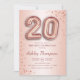20th birthday party invitation. Elegant design in faux glitter rose gold. Invite card features rose gold number 20 balloons and script font. Perfect for a stylish bday celebration. Message me if you need custom age.