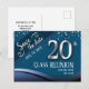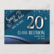 Save the date high school or Class reunion postcards. Blue theme with faux foil silver 20th with bold white text. All text is customisable except for the 20 and can be changed for your own party needs. Class banners can also be found in my shop.