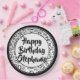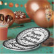 This numeric design has a black and white random number pattern with a black milestone number 20 repeated in varied sizes and angles. There is a white circle in the centre for your text and black-and-white rings around the rim.