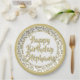 20th Party Random Number Pattern Gold/White Paper Plate