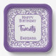 20th Party Random Number Pattern Purple/White Paper Plate