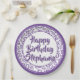 20th Party Random Number Pattern Purple/White Paper Plate