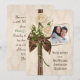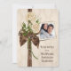 Ivory rose bouquet with pearls on damask background and personalised photo for honoured couple.