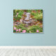 20x16 Flowing Waterfall with spring flowers Canvas Print