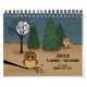This monthly calendar features colourful cartoon drawings of “CAMPER CRITTERS”, cute little animals & pets associated with camping and RV parks. Planner-Calendar inside: each page includes a “Things To Do” Section for your written notes. Each page includes animals associated with camping. Background: woodsy, forest.