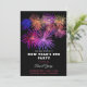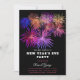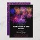 A modern and elegant New Year's eve invitation featuring colourful fireworks on black background and purple glitter on the back. This colourful invitation card captures the spirit of New Year's Eve. Perfect for inviting your friends and loved ones to celebrate new year's eve.