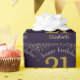 Number 21 in simulated glitter gold with falling diamonds on solid deep dark purple. Happy Birthday in open face off-white font. Personalise with recipient's names or personal message.