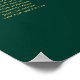 This beautiful seating chart will help your guests find their assigned tables at your wedding reception. It features a simple yet elegant design with gold text on a lush emerald green background. The title is written in script calligraphy lettering and reads: please find your table. The chart is decorated with a frilly floral faux foil gold filigree in the corners. Contains seating assignments for 21 tables at 10 guests per table or 210 guests.