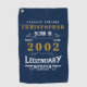 21st Birthday 2002 Add Name Retro Legend Blue Gold Golf Towel