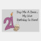 You can customise this fun twenty first birthday gift with your own text! Buy me a beer...my 21st birthday is here!