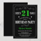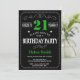 21st Birthday Black and Green Chalkboard Invitation