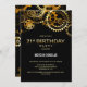 21st Birthday Black Gold Steampunk Watch Gears Invitation
