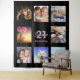 For a 21st birthday, celebrating her life with a collage of 8 of your photos of her friends, family, interest or pets. Personalise and add her name, age 21 and a date. Date of birth or the date of the birthday party. Pink and grey coloured letters. A classic black background colour. Use as party wall decor, welcome banner and as photo booth, photo backdrop.