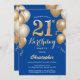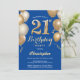 21st Birthday Blue and Gold Balloons Confetti Invitation