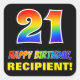 21st Birthday: Bold, Fun, Simple, Rainbow 21 Square Sticker