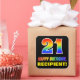 This colourful, cheerful, and fun birthday themed sticker design features a large number "21" and the message "HAPPY BIRTHDAY,", both having a rainbow spectrum gradient inspired pattern colouring, along with a bold yellow customisable name. The background is coloured black. Fun birthday themed stickers like this could be used when wrapping a gift or present being given to celebrate somebody’s 21st birthday, or perhaps maybe be handed out to the guests at a birthday celebration or party. [~Z0000480]