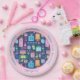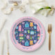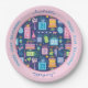 A pretty feminine paper party plate with the custom number 21 on birthday cakes and presents for any 21st birthday. Make it personal by adding the birthday girls name