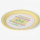 A pretty feminine paper party plate with the custom number 21  on a yellow birthday cake and for any 21st birthday.  Make it personal by adding the birthday girl's name.