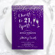 21st Birthday - Cheers To 21 Years Purple Silver Invitation