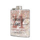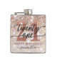 Modern chic girly birthday flask for 21st birthday. Design featuring champagne sparkly glitter texture, rose gold 21 and calligraphy script twenty one. Personalise with a name.