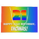 This cheerful and exciting birthday themed gift bag design features a large number “21” having a colourful rainbow spectrum inspired gradient pattern. It also features the message “HAPPY 21st BIRTHDAY,”, and a personalised recipient name. The background also features a joyful multicolored rainbow spectrum inspired gradient pattern. Personalised giftbags like this might be a fun way of wrapping birthday presents or gifts being given to somebody who is celebrating their 21st birthday. [~Z0000577]