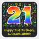This fun, colourful, and vibrant birthday-themed sticker design features a large number "21" having a rainbow spectrum gradient inspired pattern. It also features the message "Happy 21st Birthday,", and an editable name. Part of the background has a colourful music notes and symbols pattern. Birthday-themed stickers like this might be fun to use as a birthday celebration decoration, or perhaps give as a birthday present, or perhaps be used when wrapping birthday gifts being given in celebration of a singer’s, a musician’s, a song composer’s, or somebody else’s 21st birthday. [~Z0000423]