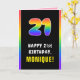 21st Birthday: Colourful Rainbow # 21, Custom Name Card