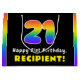 This fun and joyful birthday themed giftbag design features the number “21“ with a vibrant rainbow spectrum inspired gradient pattern, along with the message “Happy 21st Birthday,”, and a customisable recipient name. Birthday themed giftbags like this might be used when giving gifts or presents in celebration of somebody’s 21st birthday. [~Z0000632]