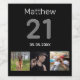 For a 21st birthday party. A collage of 3 of your photos of himself friends, family, interest or pets. Personalise and add his name, age 21 and a date. Date of birth or the date of the birthday party. Grey and white coloured text. Black background.