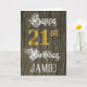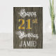 The front of this elegant and ornate birthday greeting card design features the message “Happy 21st Birthday,”, and a customisable recipient name. Some of the message is in formal script-style text. The large number “21st” features a faux/imitation gold-inspired look pattern. The background has a faux/imitation woodgrain-inspired pattern. The inside has a customised birthday greeting message, or could perhaps be cleared and left blank if a message is to be written by hand instead. An elaborate, customised birthday greeting card like this might be sent in celebration of somebody’s twenty-first birthday. [~Z0000561]