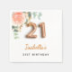For an elegant and feminine 21st birthday birthday party. A chic white background. Decorated with a rose gold and blush pink watercolored rose flower, floral, green eucalyptus leaves, sprigs, greenery and faux gold sprigs. Personalise and a name. Black and golden letters. The name is written with a modern hand lettered style script. Number 21 is written with a golden balloon style font.