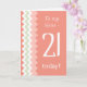 A stylish 21st Birthday Card for a Sister, with a trendy chevron pattern in Coral, Mint Green and White by Judy Adamson. You can edit the inside text if you wish.