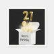 Gold balloons with sparkles and ribbons in a white box on black background for 21st birthday party.