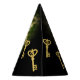 Personalised custom photo and name twenty one birthday party hat. Ideal for a special 21st birthday party celebration. Gold printed effect script lettering twenty one with a 21 key with your own fade to black photo. Add your own photo and birthday name. Original art and design by Sarah Trett for www.mylittleeden.com