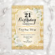 21st Birthday Invitation. Elegant floral design in gold and white. Features faux glitter gold stripes, white roses stylish script font and confetti. Perfect for a glam birthday party.