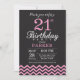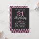 21st Birthday Invitation with Black and Pink Chevron. Chalkboard. Adult Birthday. Man or Women Bday Invite. For further customisation, please click the "Customise it" button and use our design tool to modify this template.