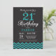 21st Birthday Invitation with Black and Teal Chevron. Chalkboard. Adult Birthday. Man or Women Bday Invite. For further customisation, please click the "Customise it" button and use our design tool to modify this template.