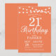 21st Birthday Invitation with String Lights. Coral Background. Female Lady Elegant bday Invite. 13th 15th 16th 18th 20th 21st 30th 40th 50th 60th 70th 80th 90th 100th, Any age. For further customisation, please click the "Customise it" button and use our design tool to modify this template.