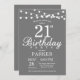 21st Birthday Invitation with String Lights. Grey Background. Men or Female Lady Elegant bday Invite. 13th 15th 16th 18th 20th 21st 30th 40th 50th 60th 70th 80th 90th 100th, Any age. For further customisation, please click the "Customise it" button and use our design tool to modify this template.