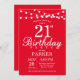 21st Birthday Invitation with String Lights. Red Background. 13th 15th 16th 18th 20th 21st 30th 40th 50th 60th 70th 80th 90th 100th, Any age. For further customisation, please click the "Customise it" button and use our design tool to modify this template.
