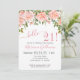 Pink floral modern 21st birthday invitations - 'hello 21!' party with white background and beautiful print that you can customise with all of your birthday party information. with peach and pink colours - elegant.